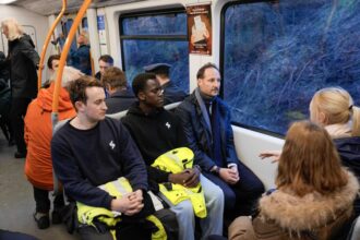 Kronprins Haakon på T-banen til Majorstuen, før markering av gjennomslag av Fornebubanens tunnel. Foto: Ole…