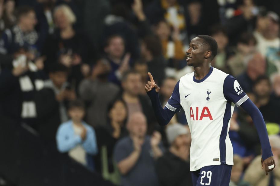 Pape Matar Sarr scoret fra langt hold da Tottenham slo Arsenal torsdag. Foto: Ian Walton / AP / NTB.