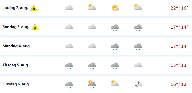 Sommer: Ifølge værvarslene vil dagtemperaturene krype ned mot 15–16 grader allerede fra starten av neste uke. Samtidig blir det en klar endring i vindretningen, med en forventet kaldere nordavind. Denne kombinasjonen vil gjøre at det føles mer høstlig enn sommerlig.
