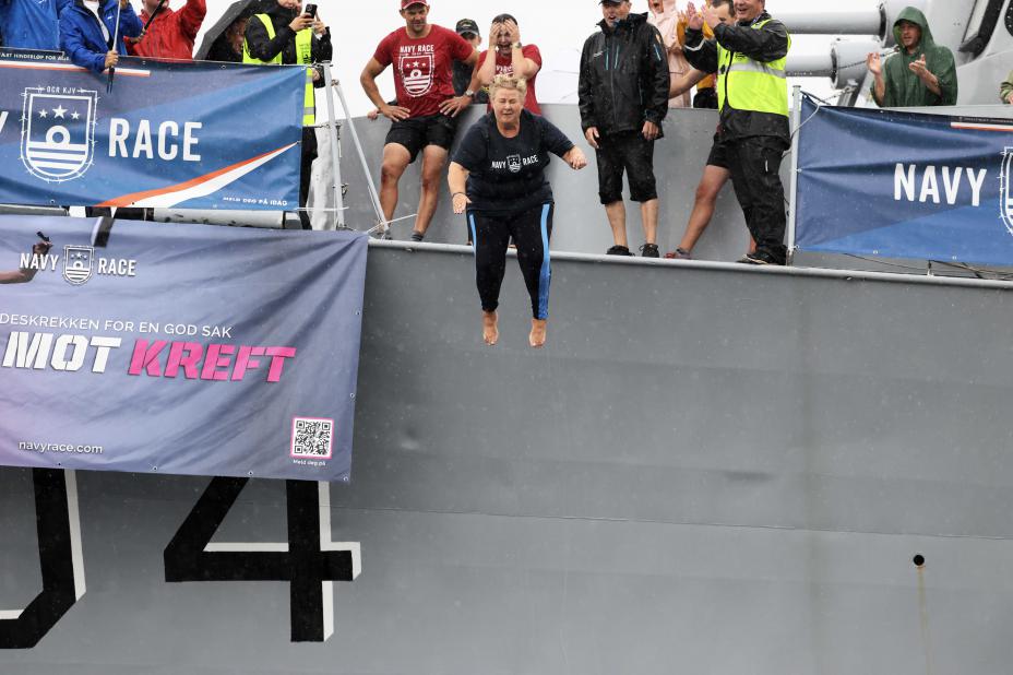 Fredag var det dødsekonkurranse, og etterpå fritt fram for de som ville teste høydeskrekken og hoppe 5,5 meter ned i havet for en god sak fra fregatten KNM Narvik. Da ble statsministerkandidat Erna Solberg (H) utfordret til å gjøre et «Hopp mot kreft».