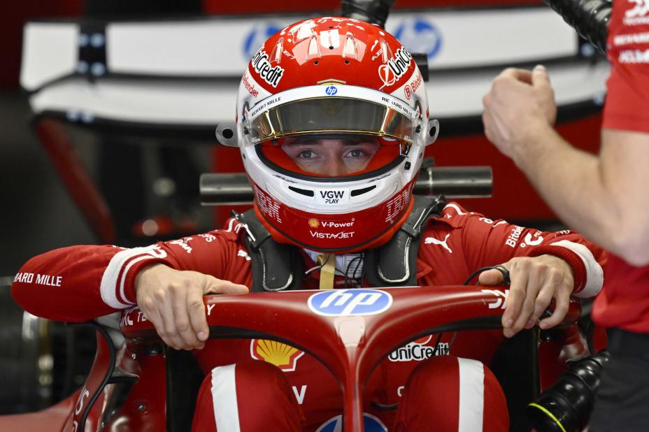 Sport: Ferrari-føreren starter foran VM-leder Oscar Piastri og Lando Norris. Begge de to sistnevnte kjører for McLaren og har herjet denne sesongen.