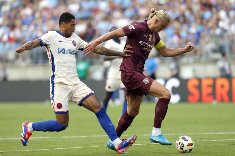 Levi Colwill, her i duell med Erling Braut Haaland, skadet seg på trening i sesongoppkjøringen. Foto: Tom E. Puskar / AP / NTB