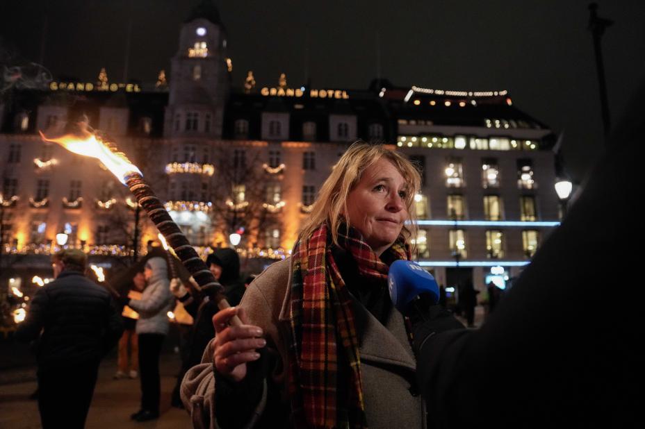 Lene Haug er førstekandidat for Redd Ullevål sykehus-listen. Her er under et fakkeltog i 2023. Foto: Beate Oma Dahle / NTB