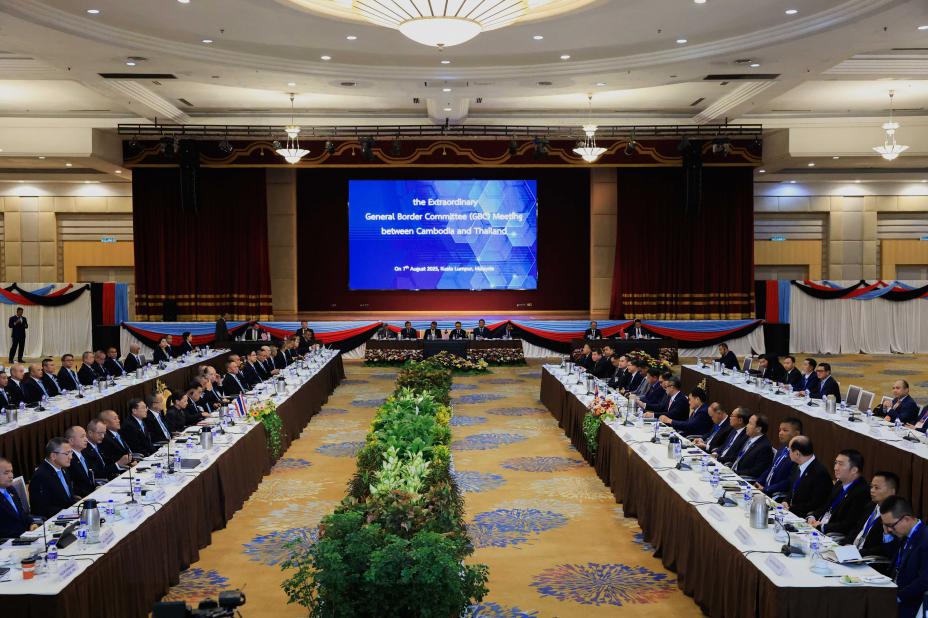 Thailandske og kambodsjanske delegater møtes i Kuala Lumpur for å løse grensekonflikt. Foto: Hasnoor Hussain / AP / NTB