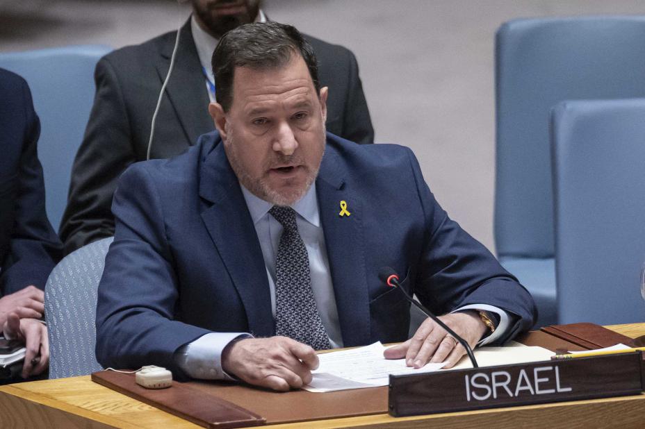 Israels FN-utsending Brett Jonathan Miller møtte sterk kritikk i Sikkerhetsrådet søndag. Foto: Yuki Iwamura / AP / NTB