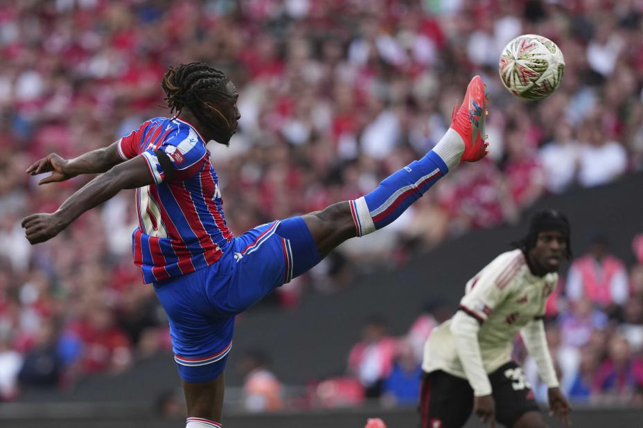 Eberechi Eze og Crystal Palace vant søndagens Community Shield-oppgjør mot Liverpool. Dagen derpå kom beskjeden om at laget ikke får spille i europaligaen i høst. Foto: Dave Shopland / AP / NTB