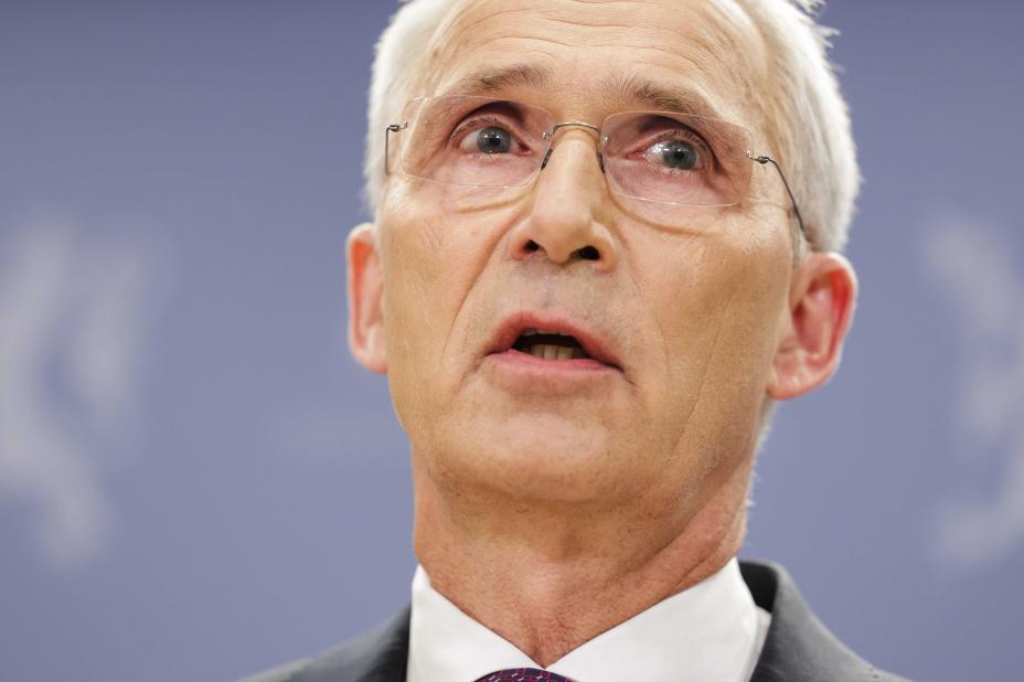 Finansminister Jens Stoltenberg møter pressen for å svare på spørsmål om pensjonsfondets investeringer og offentliggjøringen av tiltakene fra Norges Bank. Foto: Amanda Pedersen Giske / NTB