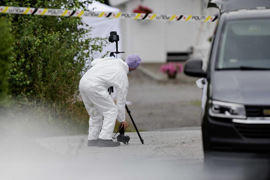 Politiet arbeider på stedet etter at en kvinne ble funnet død i Skiptvet natt til 4. august. Foto: Christoffer Andersen / NTB