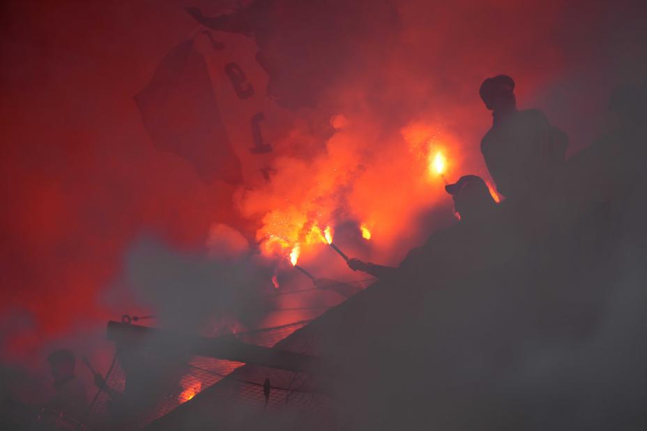 Mye pyrobruk under kvalifiseringskampen mellom Rosenborg og Hammarby på Lerkendal stadion.
