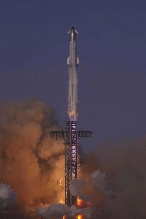 SpaceX’ Starship-rakett under en tidligere testoppskytning. Foto: Eric Gay / AP / NTB