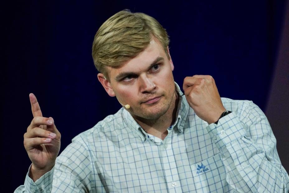 Leder Nils Forren i Senterungdommen under ungdomspartilederdebatten under Arendalsuka torsdag.