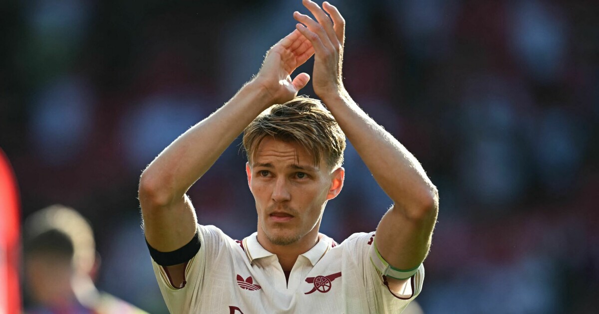 Arsenal-kaptein Martin Ødegaard møtte opp hos Sky Sports i pausen mot Manchester United på Old Trafford for å dele sine tanker om de første 45 minuttene i det som er et nytt grep i engelsk fotball.