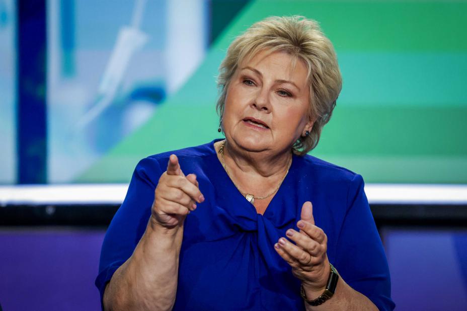 Høyre-leder Erna Solberg fikk et gjennomsnittlig terningkast på 5 fra mediene etter debatten. Foto: Paul S. Amundsen / NTB