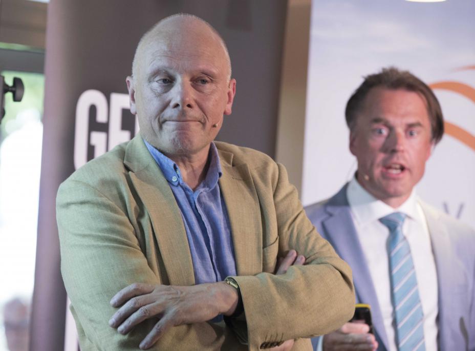 Redaktør Johan Giertsen i Pollofpolls.no mener årets valg er det mest spennende siden 1945. I bakgrunnen Frps kommunikasjonssjef Kjetil Løset. Foto: Terje Pedersen / NTB