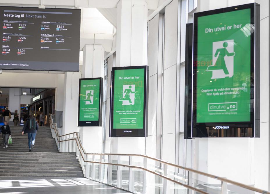 Senteret lanserer nå en visuell kampanje der man ser et nødutgang som viser en person på flukt. Her vises adressen til nettsiden Dinutvei.no med informasjon for å hjelpe ofrene. Den er tilpasset de som er utsatt for overgrep og kontroll, de pårørende og fagpersoner. Her finner man oversikt over ulike hjelpetilbud, og det er mulig å stille spørsmål anonymt.