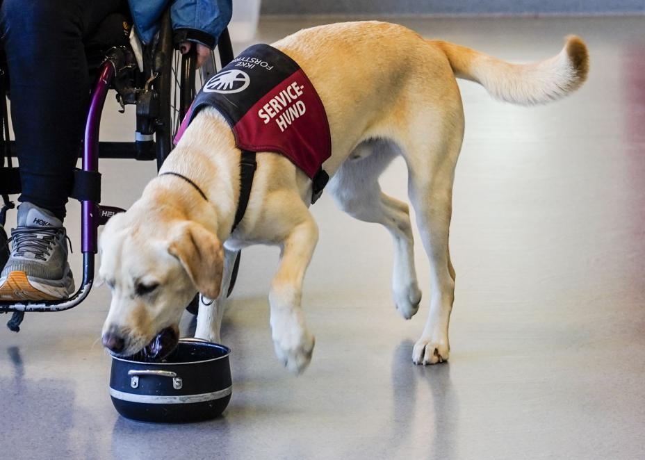 En servicehund kan hjelpe eieren med mye rart – for eksempel å rydde oppvasken. Når den er på jobb, kan den gå løs.