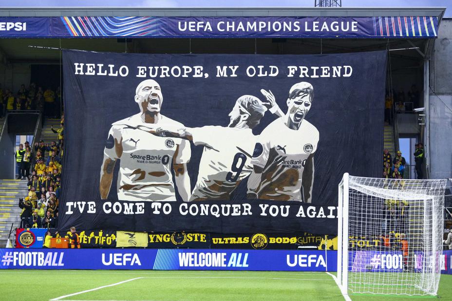 Champions League-bannere vil etter alle solemerker bli en gjenger på Aspmyra gjennom høsten. Foto: Mats Torbergsen / NTB