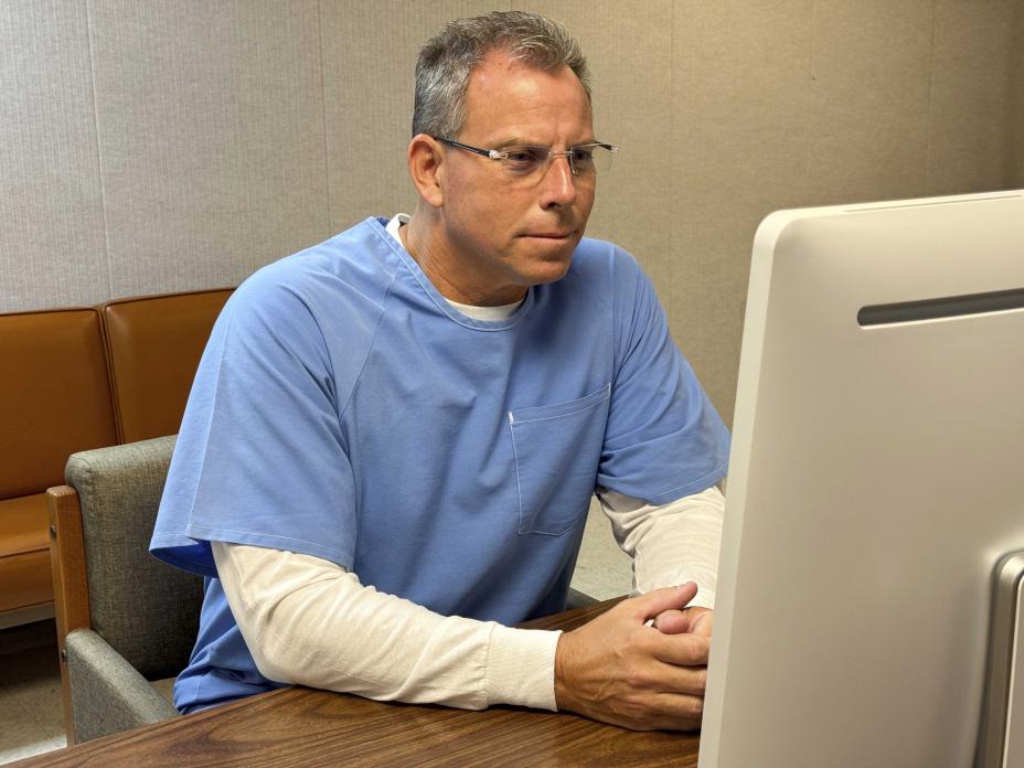 Erik Menendez møtte benådningskommisjonen via videokonferanse torsdag fra fengselet Richard J. Donovan Correctional Facility i San Diego. Foto: California Department of Corrections / AP / NTB