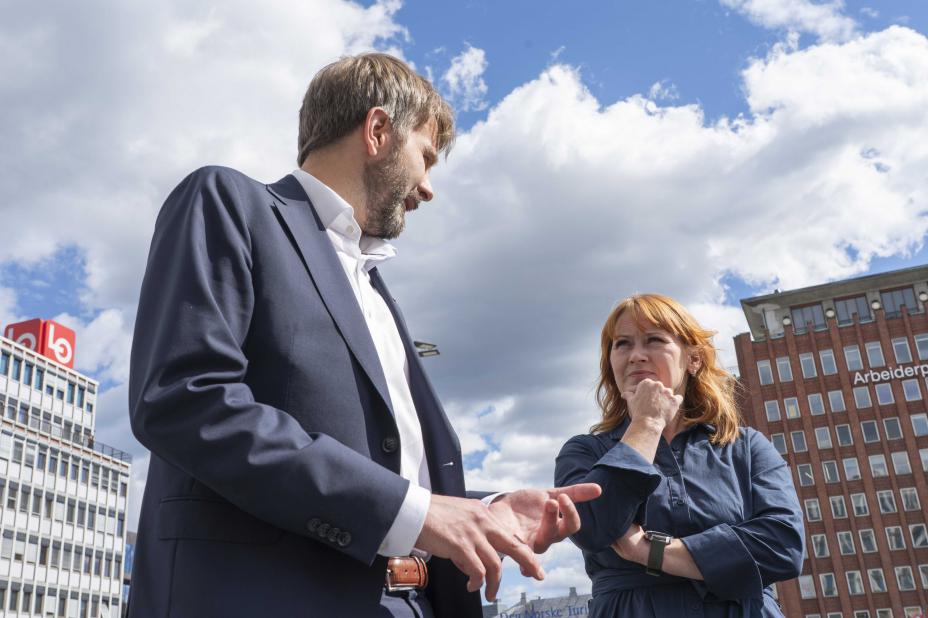 Helse- og omsorgsminister Jan Christian Vestre (Ap) og LO-leder Kine Asper Vistnes går sammen om å sende et skremmeskudd mot borgerlig valgseier. Foto: Jonas Fæste Laksekjøn / NTB