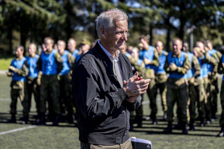 Statsminister Jonas Gahr Støre (Ap) besøkte militærleiren Madla søndag. Foto: Carina Johansen / NTB