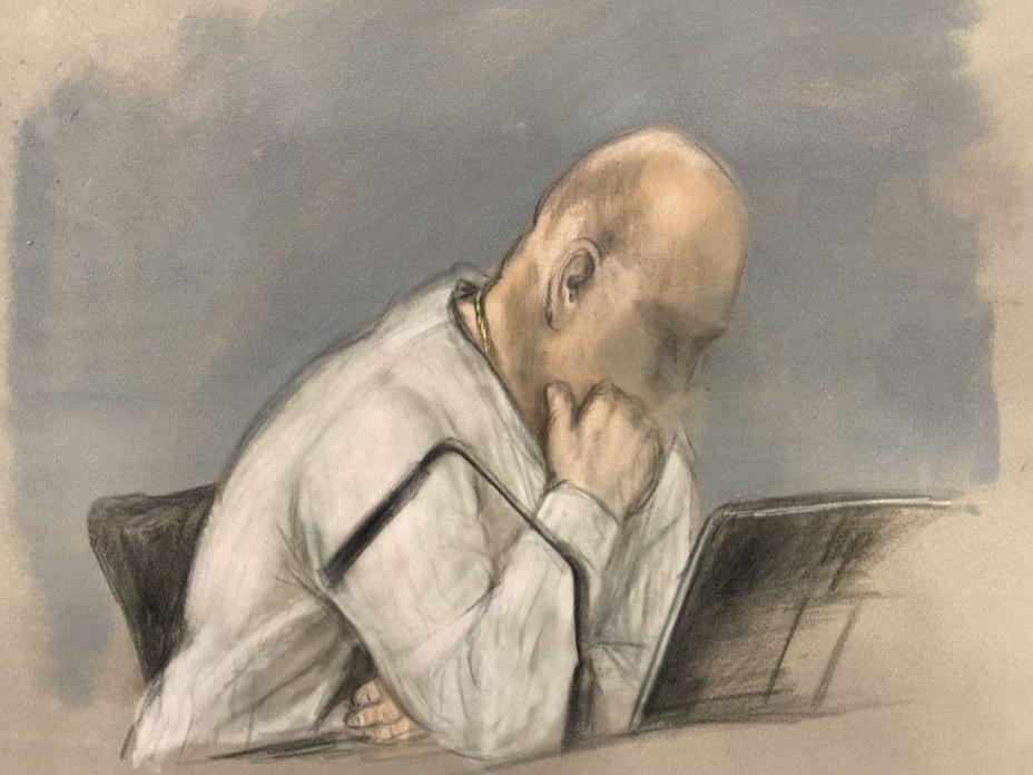Rettstegning av Jan Helge Andersen under rettssaken mot ham tidligere i år. Andersen ble dømt også for drapet på Lena Sløgedal Paulsen (10) i Baneheia i Kristiansand 19. mai 2000. Tegning: Ane Hem / NTB