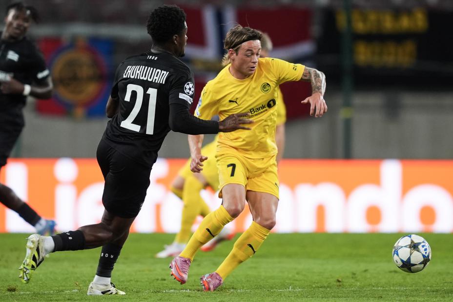 Patrick Berg under kvalifiseringskampen til Champions League mellom Sturm Graz og Bodø/Glimt på Wörthersee Stadion i Østerrike. Foto: Terje Pedersen / NTB