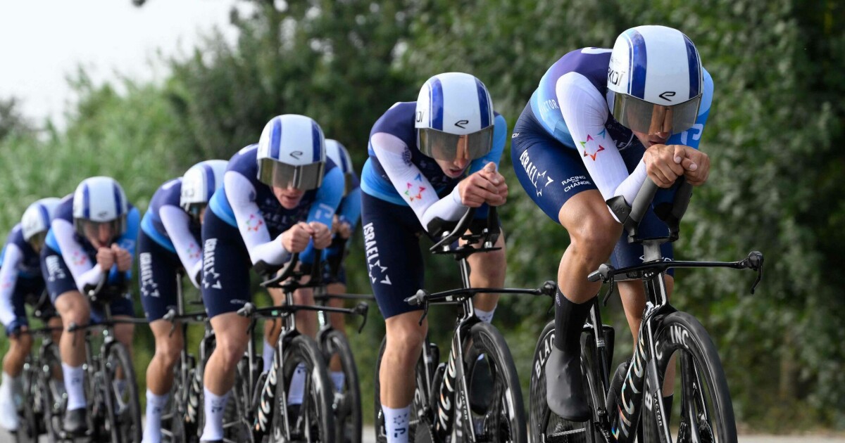 BLE STOPPET: Israel-Premier Tech på lagtempoen.