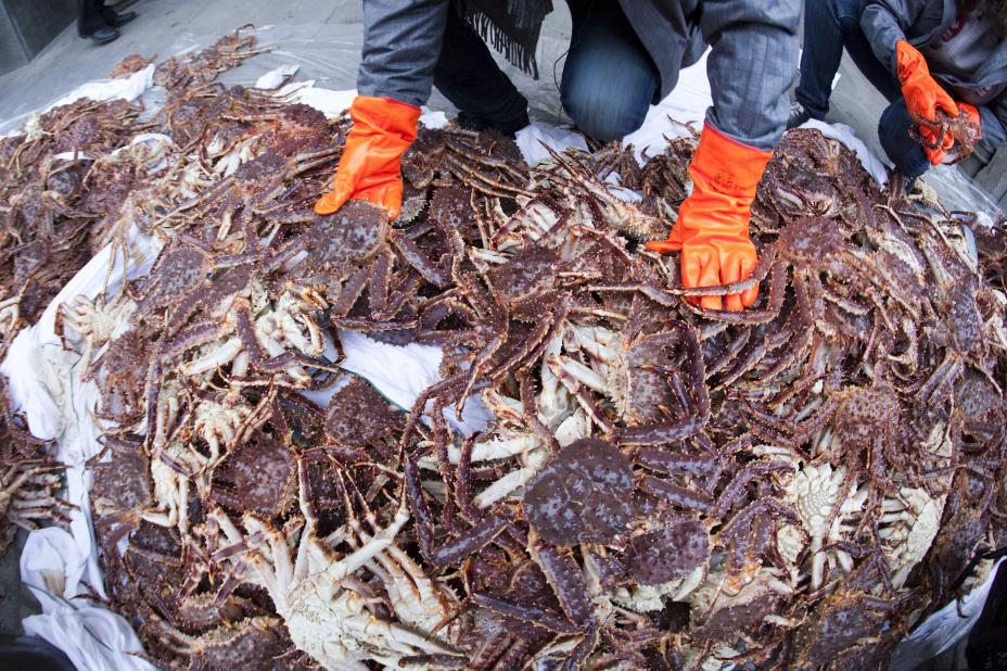 Teiner med kongekrabbe, reke og annen fisk må tas opp før fjordene stenges. Arkivfoto: Heiko Junge / NTB.