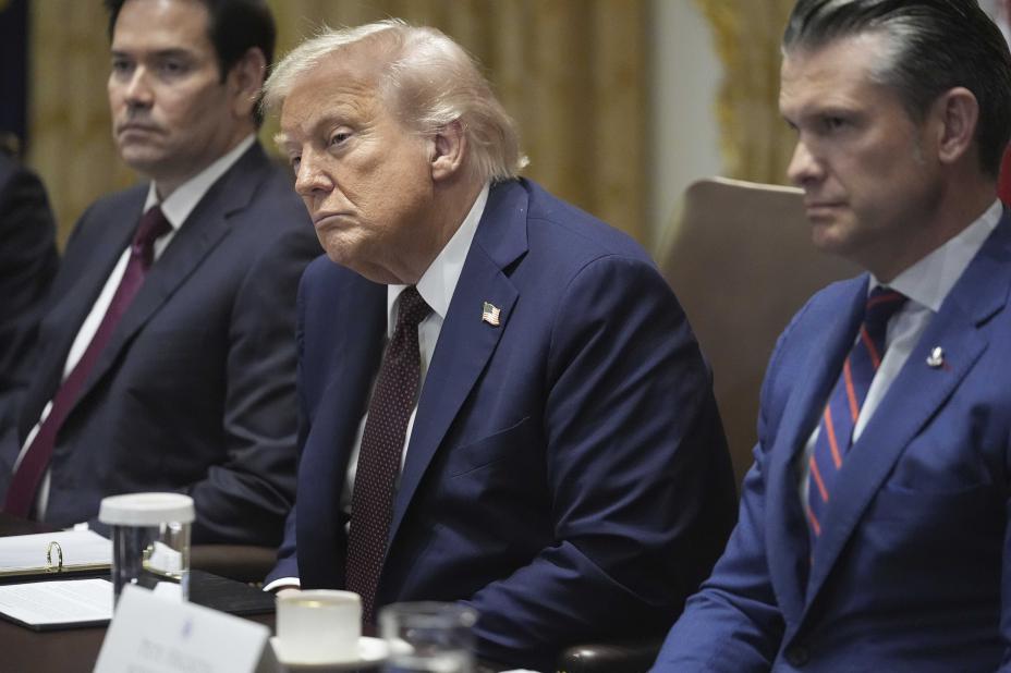 I et regjeringsmøte tirsdag sa Donald Trump, her flankert av utenriksminister Marco Rubio (til venstre) og forsvarsminister Pete Hegseth, at han ønsker seg dødsstraff for alle drap begått i Washington D.C. Foto: Mark Schiefelbein / AP / NTB