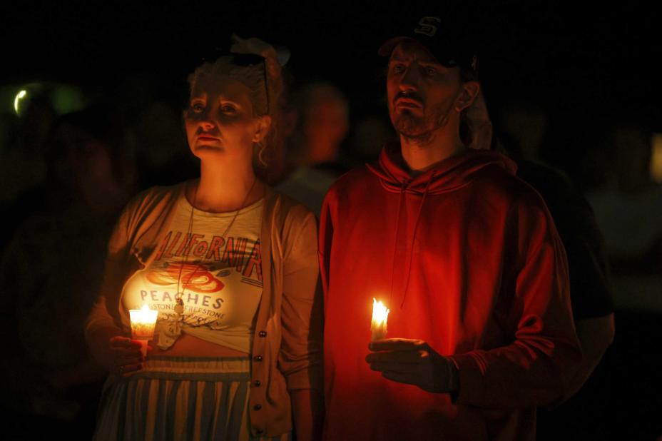 Mange samlet seg onsdag kveld i en park i Minneapolis for å minnes de to barna som ble drept i skoleskytingen. Foto: AP / NTB