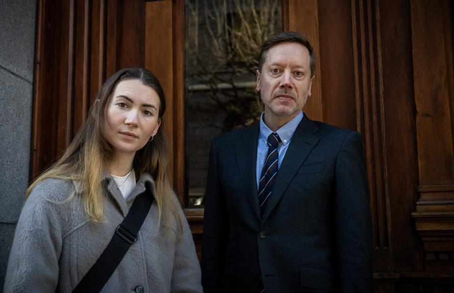 Borgarting lagmannsrett behandler i dag miljøorganisasjonenes krav om letestans i oljefeltene Yggdrasil, Tyrving og Breidablikk. Det er Natur og Ungdom, her ved leder Sigrid Hoddevik Losnegård (t.v.), og Greenpeace, her representert av leder Frode Pleym, som krever stans. Foto: Ole Berg-Rusten / NTB