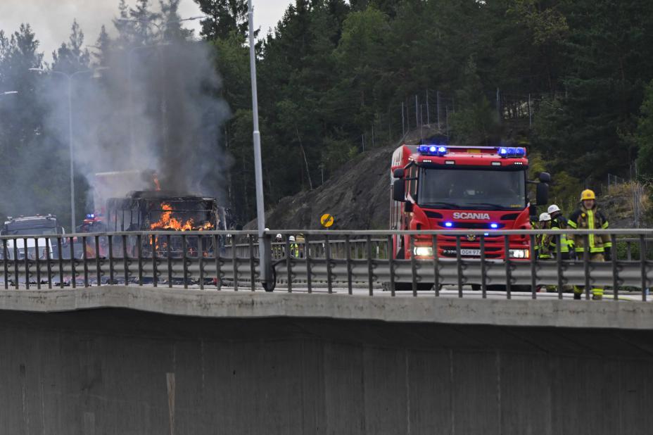 Reading: Kraftig bussbrann etter kollisjon med personbil utenfor Stockholm