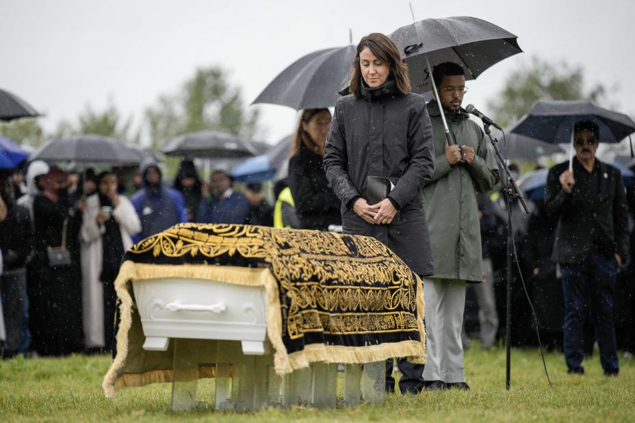 Minnet om Tamina vil for alltid inspirere og motivere til å stå opp for andre og kjempe mot rasisme, sa statsråd Tonje Brenna ved begravelsen for Tamima Nibras Juhar på Alfaset gravlund fredag. Foto: Stian Lysberg Solum / NTB
