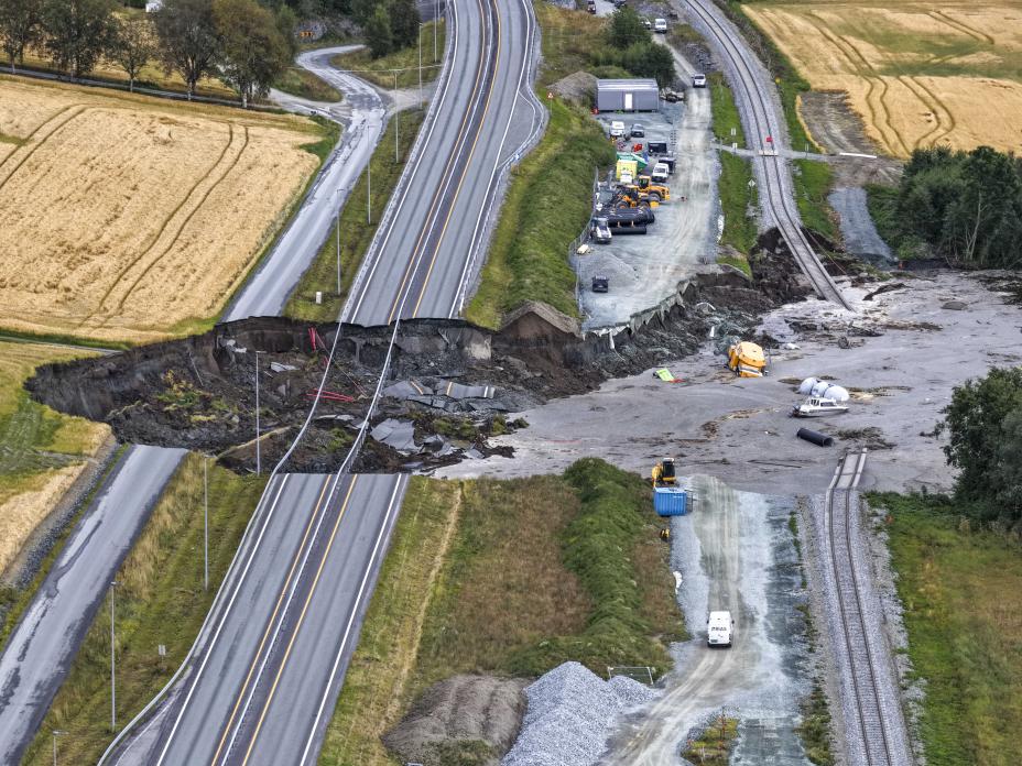 Lørdag morgen gikk det er ras over både nye og gamle E6 samt jernbanen ved Nesvatnet. En dansk mann som arbeidet i området, har vært savnet siden raset gikk, og er antatt omkommet.