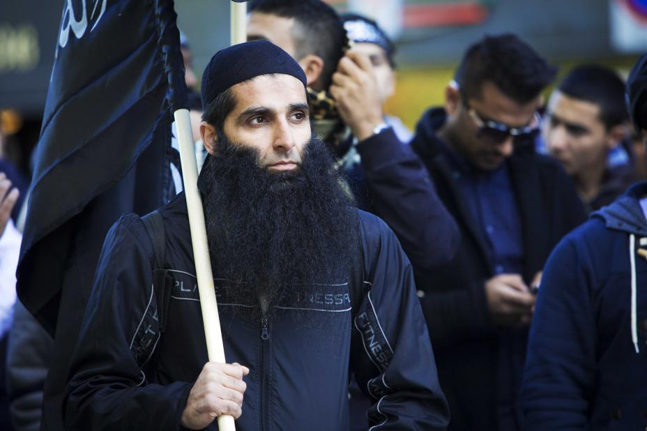 Arfan Bhatti fotografert under en demonstrasjon ved den amerikanske ambassaden i 2012. Dette er det nyeste bildet av ham i NTBs arkiv. Bhatti samtykker til fotografering før retten settes i saken mot ham, som starter i Oslo tingrett tirsdag. Foto: Kyrre Lien / NTB