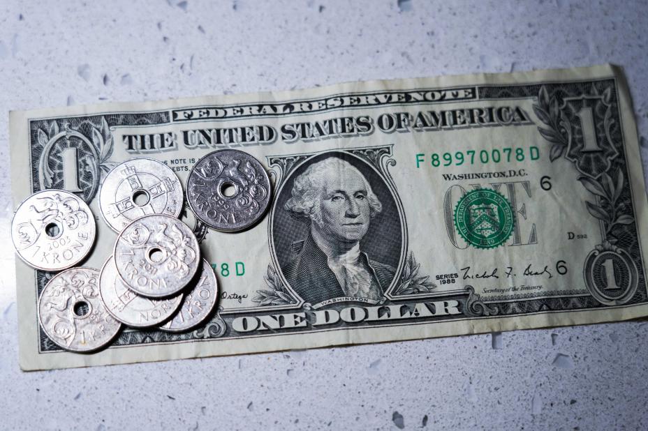 Dollaren ligger under 10 kroner mandag. Foto: Erik Flaaris Johansen / NTB