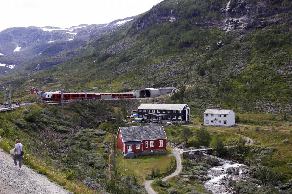 Bergensbanen på vei inn i tunnelen ved Myrdal stasjon. Foto: Marianne Løvland / NTB