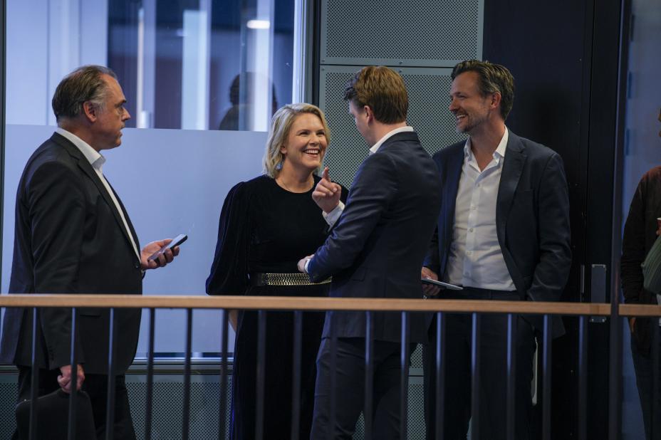 Frp-leder Sylvi Listhaug ser ut til å være i godt humør før partilederdebatten tirsdag – trolig inspirert av brakseieren i skolevalget samme kveld.