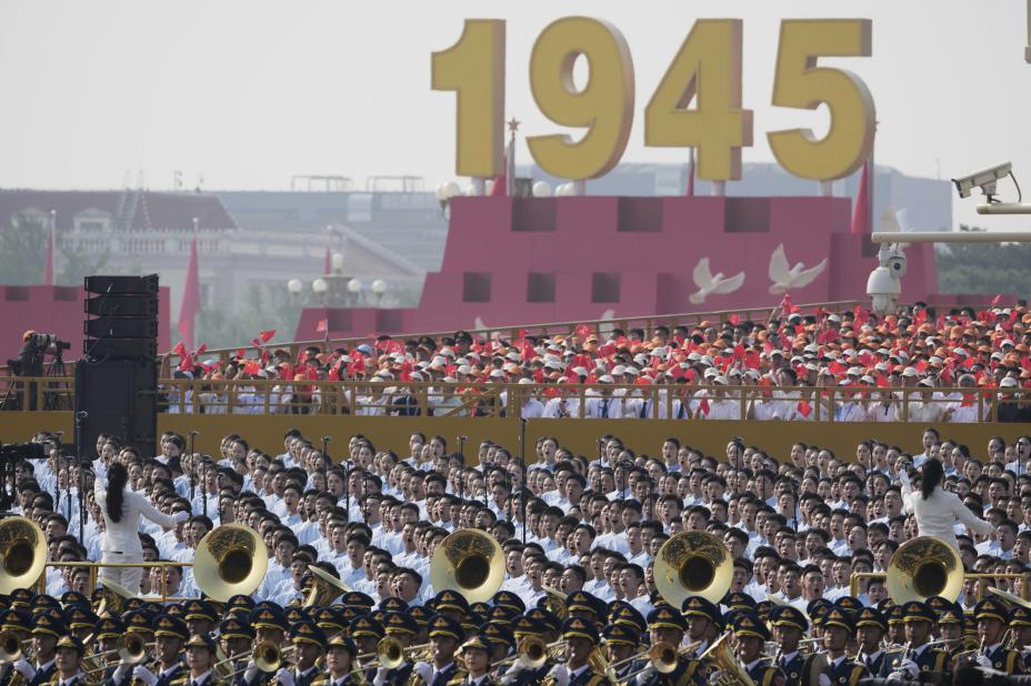 Militærparaden holdes for å markere at det er 80 år siden slutten av andre verdenskrig. Foto: Ng Han Guan / AP / NTB