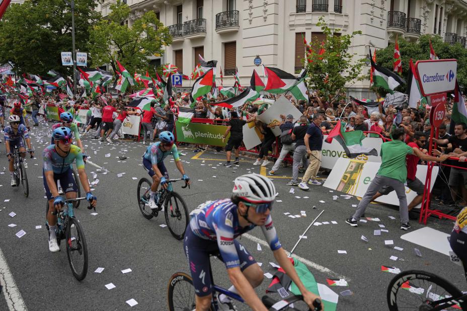 De propalestinske protestene har preget årets Grand Tour-ritt fra start. Flere ganger er det blitt tilløp til farlige situasjoner.