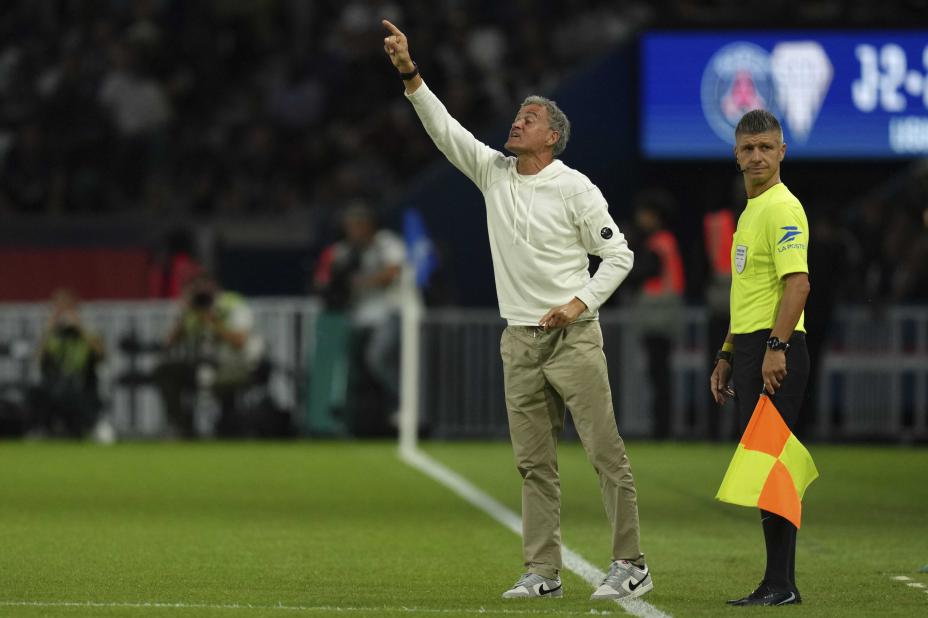 Luis Enrique i aksjon på sidelinjen i Paris Saint-Germains seriekamp mot Angers forrige måned. Foto: Aurelien Morissard, AP / NTB