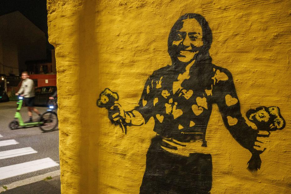 Tirsdag kveld dukket det opp et maleri av den drepte Tamima Nibras Juhar (34) på en husvegg på Kampen. Gatekunstneren Töddel sier det er til ære for henne. Foto: Javad Parsa / NTB