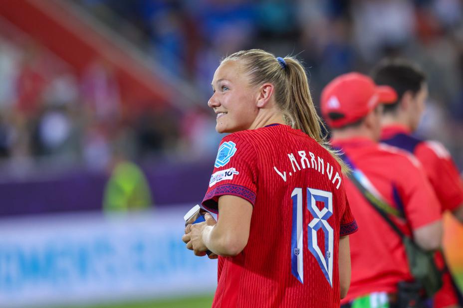 Kampen levde helt til innbytterne Stina Blackstenius og Maanum scoret to raske mål i det 83. og 84. minutt. Maanum kom inn for Victoria Pelova etter en time, og hun nikket inn et innlegg fra Beth Mead til 4-1.