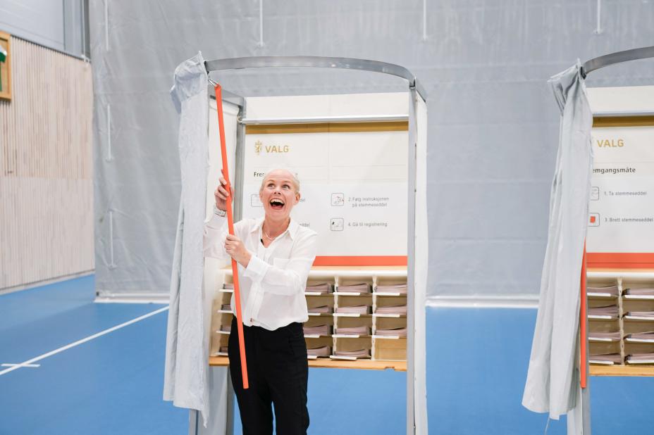 Politikk: Bergstø avga sin stemme i Slattumhallen i Nittedal.
