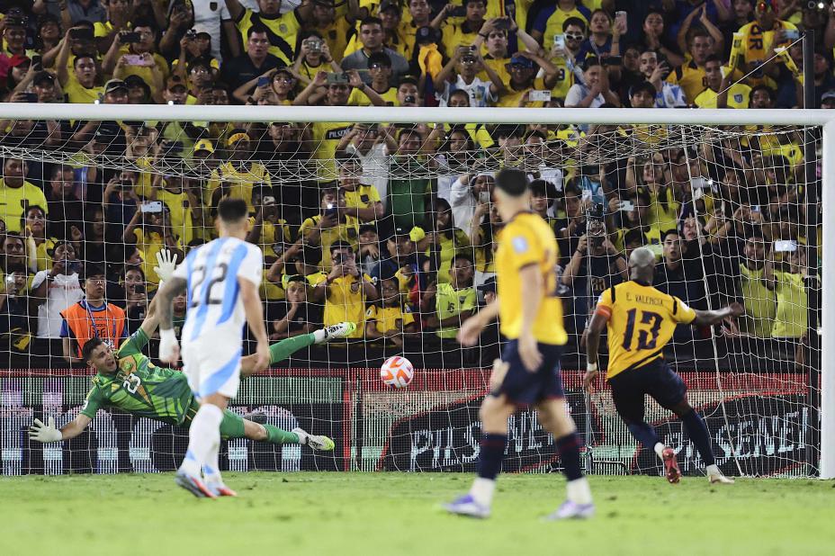 Enner Valencia satte inn straffen som ga Ecuador seieren. Foto: Patricio Teran / AP / NTB