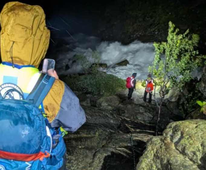 Redningsaksjonen ble da overlatt til mannskap fra Røde Kors. 15 frivillige deltok i aksjonen, hvorav 11 tok seg inn til stedet der mannen befant seg. Aksjonen ble utfordrende, da det regnet og var mørkt. I tillegg var det glatt og sleipt i det bratte terrenget.