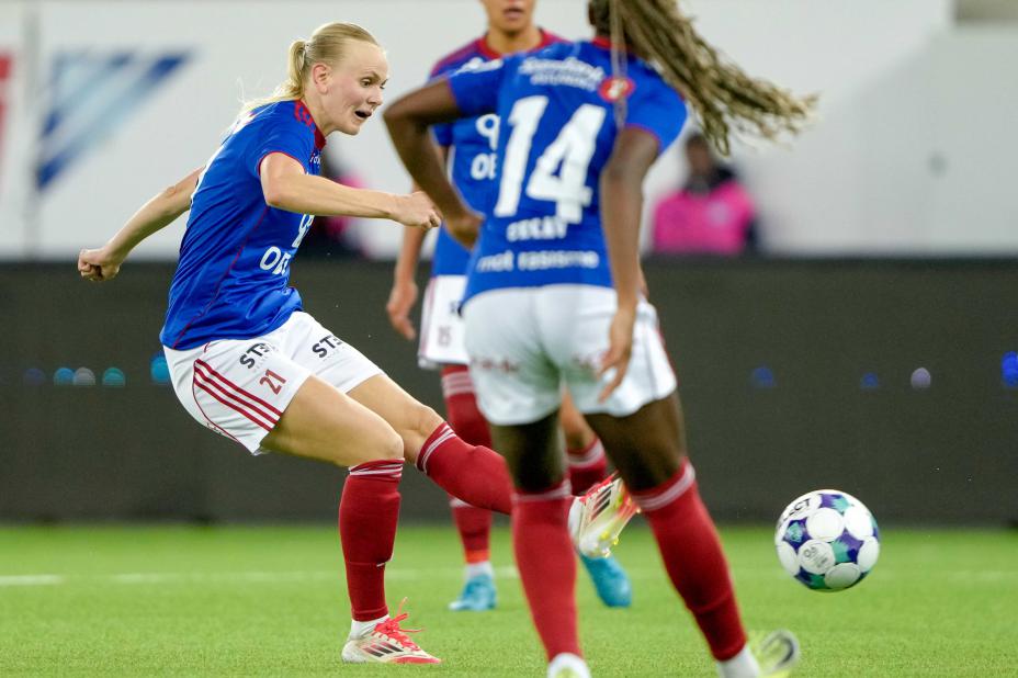 Karina Sævik scorer Vålerengas ledermål mot Ferencvaros. Foto: Cornelius Poppe / NTB