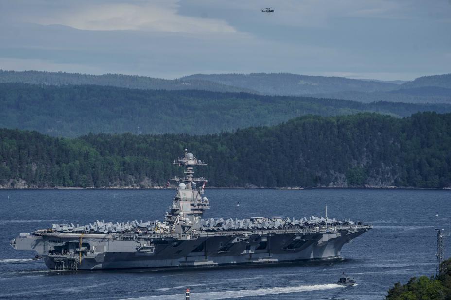 USS Gerald R. Ford ved Oscarsborg da skipet besøkte Oslo forrige gang. Foto: Stian Lysberg Solum / NTB