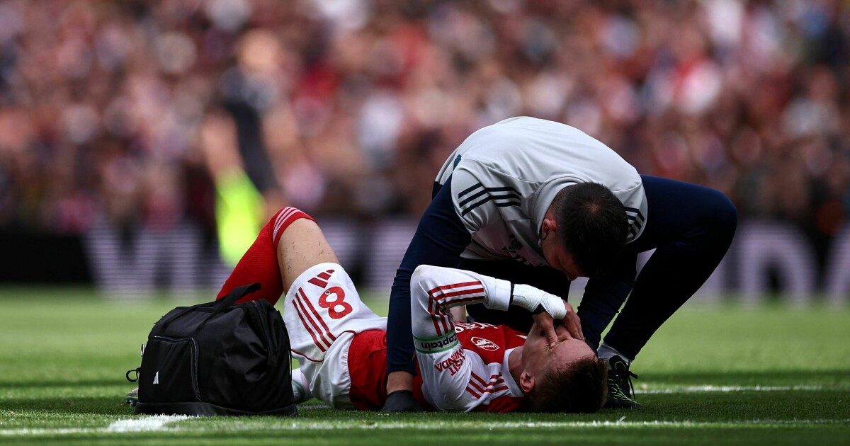 Ødegaard ble taklet av lagkompis Jurrien Timber og landet på skulderen, som han også tidligere i sesongen har hatt problemer med.