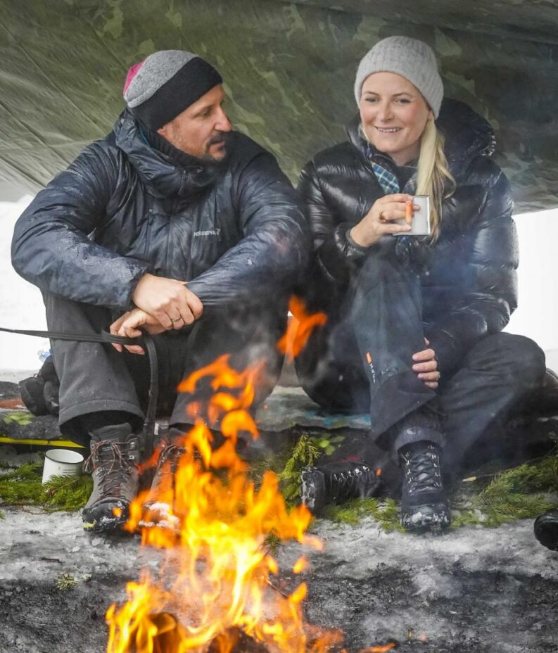 Kronprinsparet er veldig glad i å brenne bål i skogen. Her ser du kronprins Haakon og kronprinsesse Mette-Marit på Øvresetertjern i Oslo under vinteren i forfjor. Foto: Lise Åserud / NTB